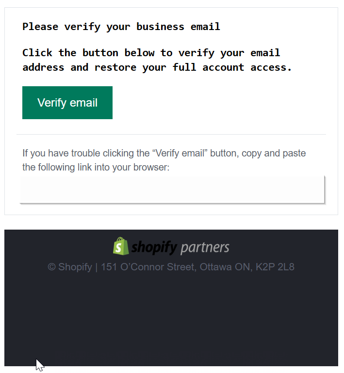 Click the Verify email button, and your Shopify Partner Dashboard will open.