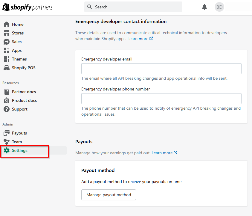 After creating the partner account and opening the Dashboard, you will need to fill out some additional details. Add your store details in the dashboard. Include the method by which you will be paid and provide your service-related information. All these details will be found under the Settings option.