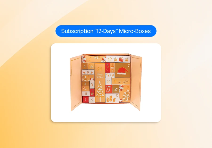 You will definitely win shoppers’ attention with a box that contains surprise elements. The subscription box will deliver each product over the course of 12 days of Christmas. Customers will be able to choose the kind of product they want, and each day they will get something different. You can include a floral arrangement box, a personalized gift box, a couple of daily gifts, a surprise gift for the little ones, or various other micro-boxes that will appeal to audiences of all levels.