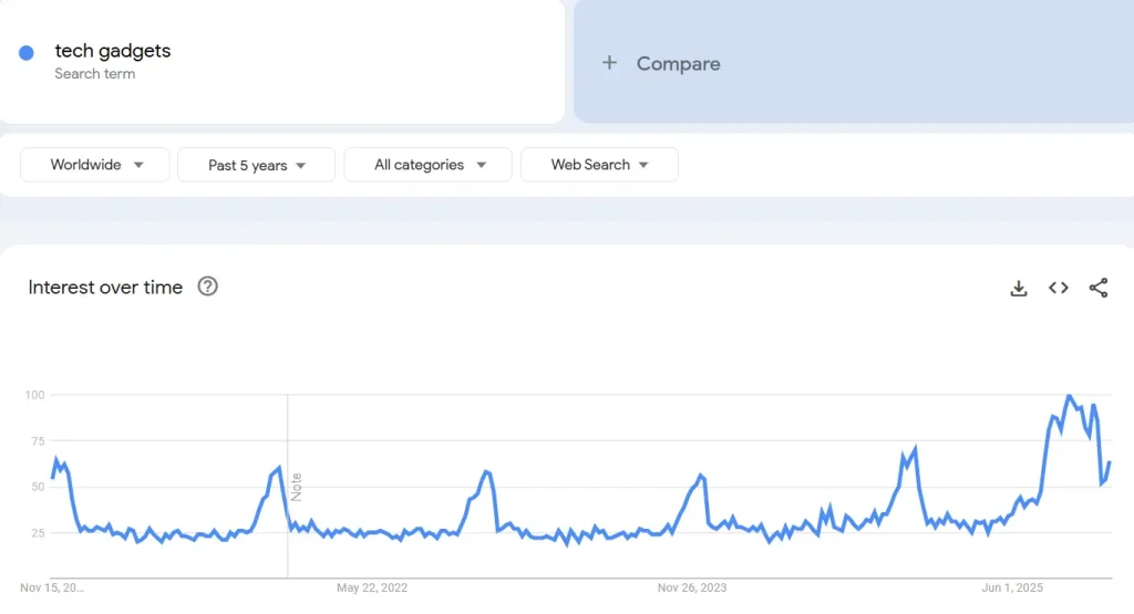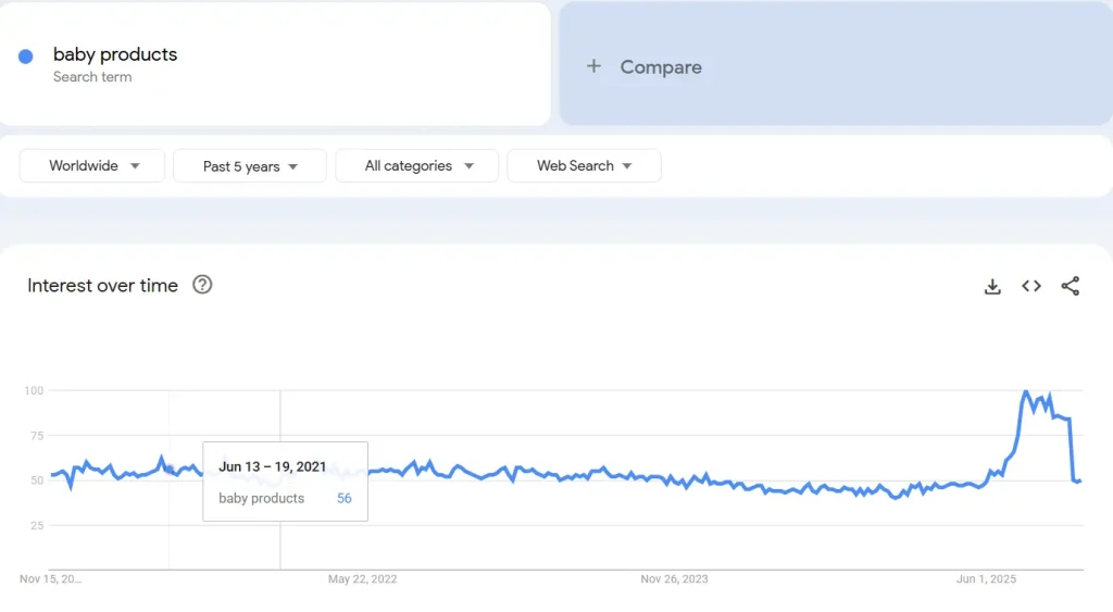 • Google Trends: This is your business game-changer to analyze demand and trends in different regions. It’s free to use, and you can check if a product’s search interest is steady or growing over time.